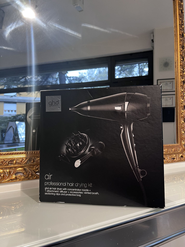 Il kit contiene: il pluripremiato asciugacapelli professionale ghd air caratterizzato da un potente motore professionale per un'asciugatura ultra rapida e da una tecnologia a ioni per un finish professionale in pochi minut; il diffusore** per ottenere onde naturali e volume; un beccuccio piatto per uno styling di precisione; due clips per dividere in sezioni i capelli e facilitare lo styling; una spazzola in ceramica ghd ceramic brush misura 3 per dare corpo e volume alla tua piega e una sacca protettiva per riporre il tuo asciugacapelli ghd air e proteggerlo dalla polvere.
